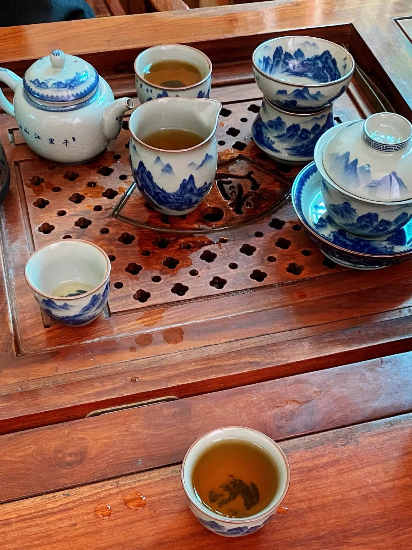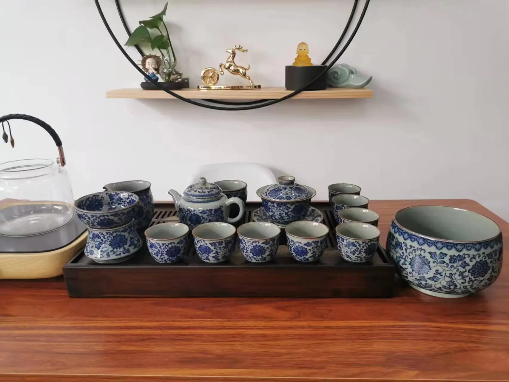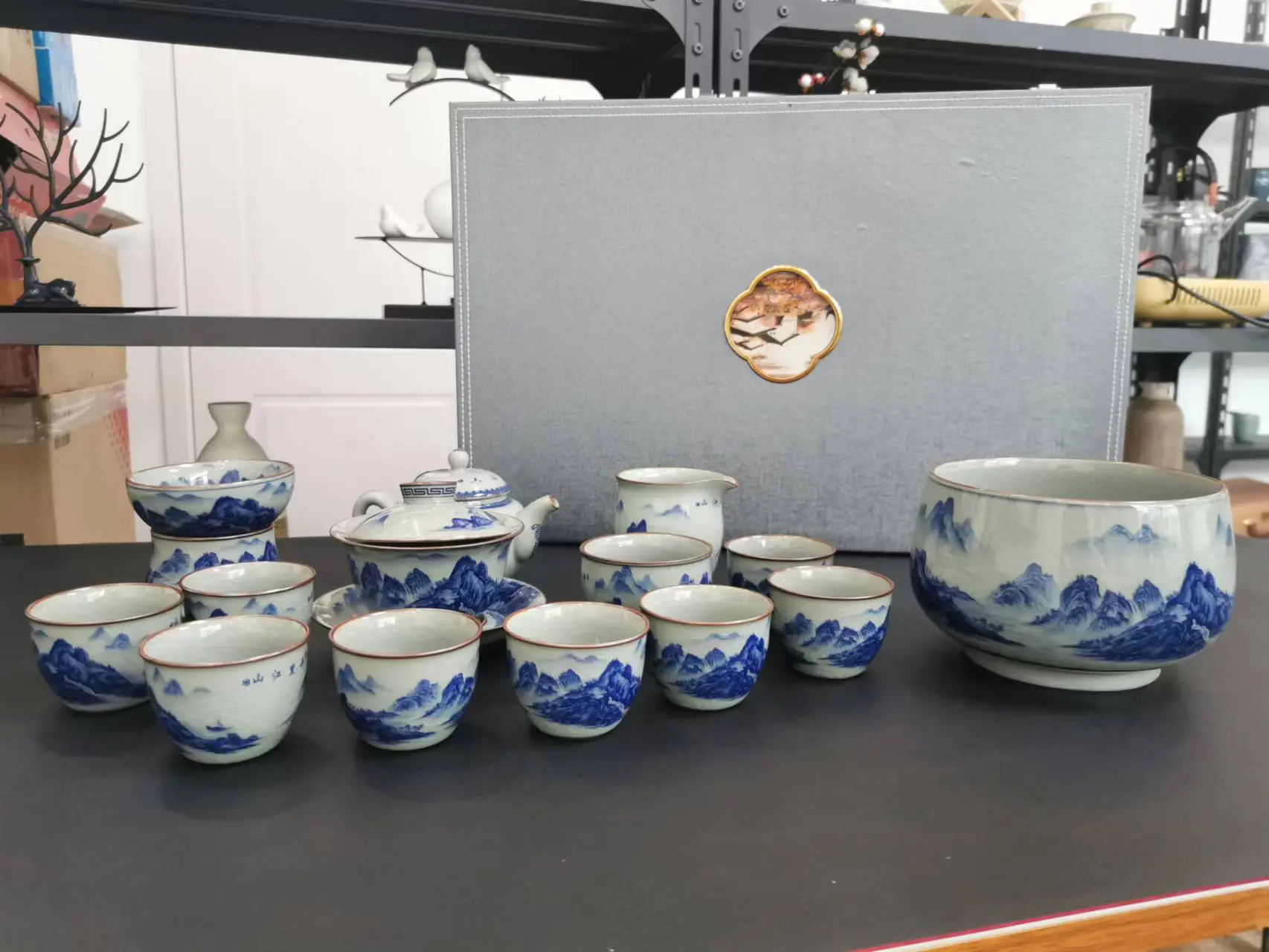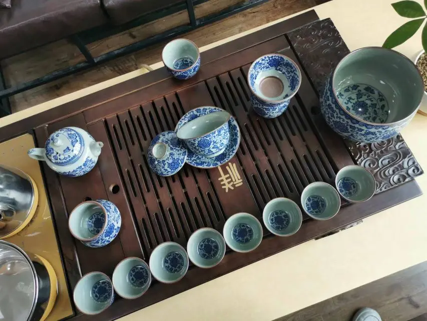 Get the complete vintage gongfu tea set in blue and white porcelain that is perfect for anyone looking to get into gongfu tea. The set includes a Gaiwan set, a teapot, a fair cup, a set of tea strainers, a washer, one master cup, and eight tasting cups. You can look more professional at a tea ceremony party by letting yourself use the master cup and letting your guests use the tasting cups.