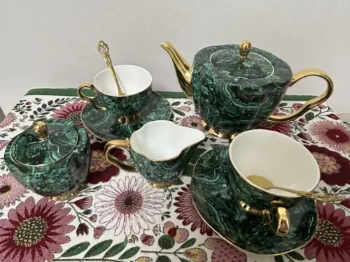 Versatile Modern Design: Beyond its classic charm, the modern design of this tea set makes it a versatile addition to any setting. Whether you’re hosting a formal gathering or enjoying a cozy tea moment at home, the blend of gold and green hues ensures this set stands out as a symbol of elegance and refinement.