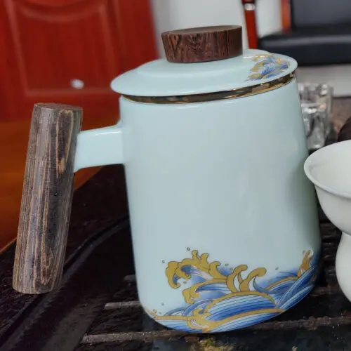 Tumbling Waves Tea Mug with Infuser and Lid 15 OZ