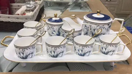 Introducing our exquisite Yucca Bone China English Tea Set in Blue and White – a true masterpiece designed to enchant tea and coffee aficionados alike. Immerse yourself in the vintage charm of this luxurious set, which includes a bone china coffee pot, sugar bowl, creamer, cups, and saucers. The contemporary blue and white design, adorned with intricate magnolia flower patterns, creates an eye-catching allure perfect for any household. Crafted from high-quality bone china with over 45% animal bone meal, this set ensures durability and a smooth, sophisticated touch. Elevate your tea or coffee moments with the most luxurious English tea set in our store. Act now and bring home a timeless blend of beauty and functionality!