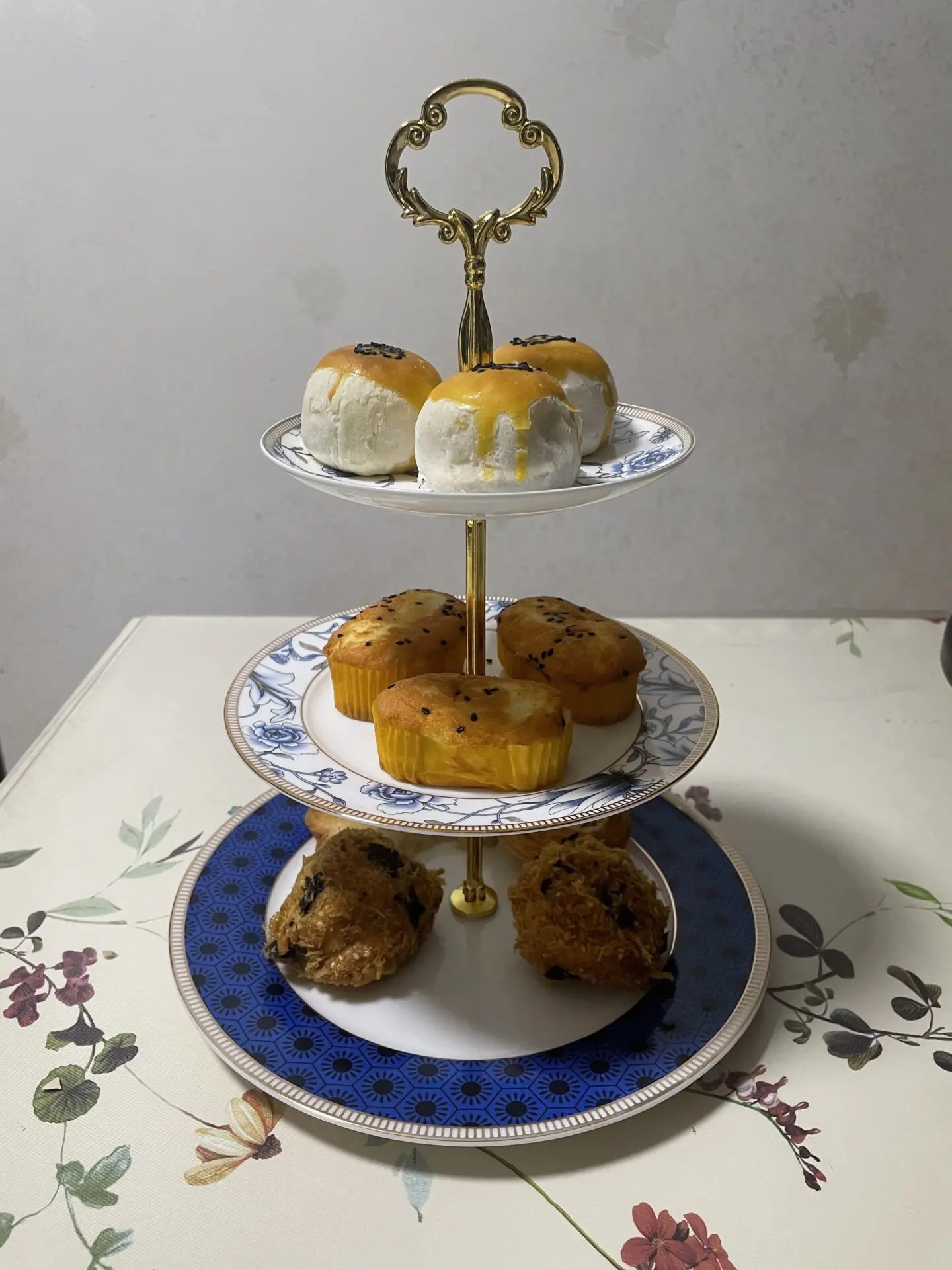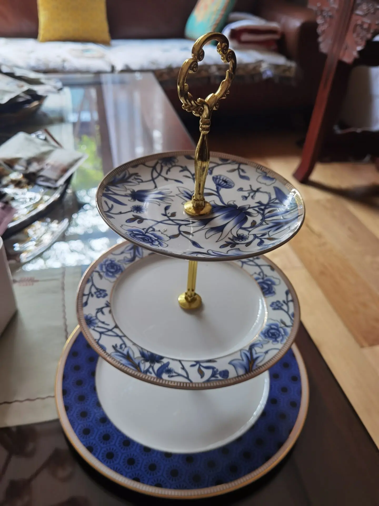 I really like this three tiers. Solid, sturdy, clean crisp blue and white color, classic and easy to put together.