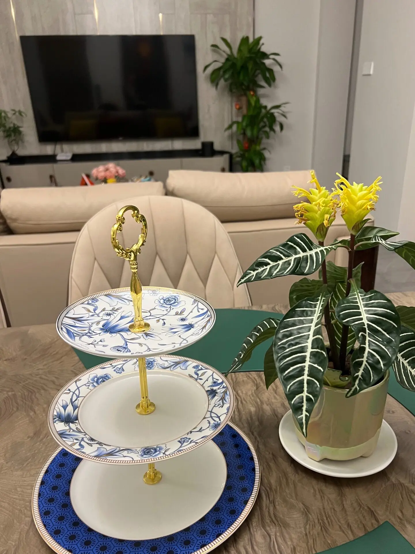 Add a touch of elegance to your kitchen or living room with this beautiful Yucca Cake Stand Bone China Tiered Server. With its refreshing Yucca flower pattern and classical blue-and-white design, this cake stand will be a stunning addition to any decor. It comes in two options with two or three tiers. It comes in a beautifully designed package, making it an excellent gift choice.