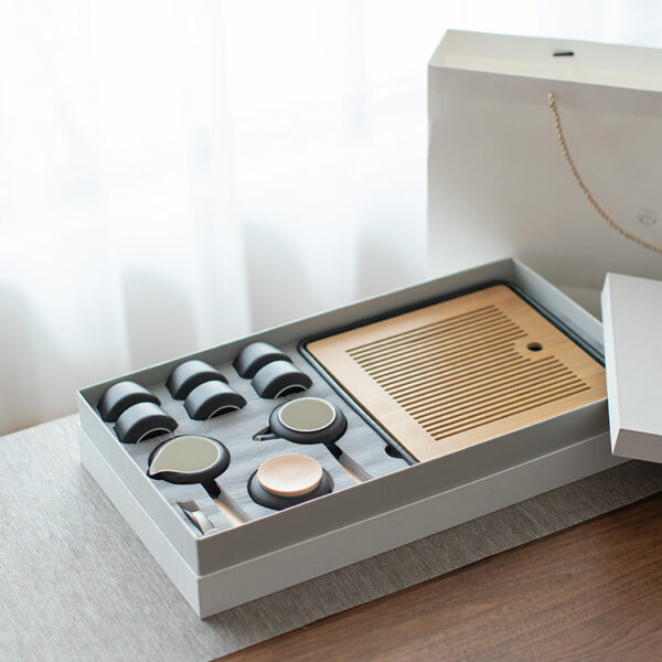 This sequence not only showcases the set’s practicality but also the art of tea preparation and enjoyment. Whether for personal use or as a distinguished gift, the sleek design and functional elegance of this tea set make it a perfect choice.