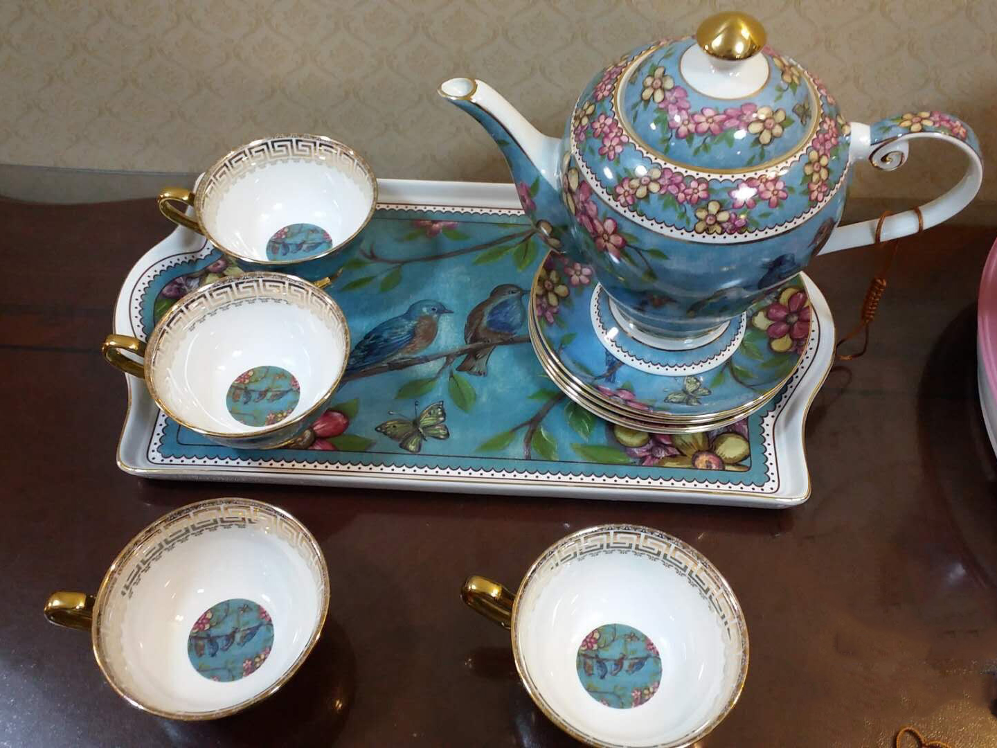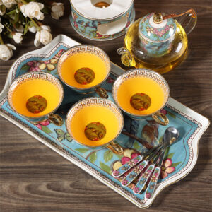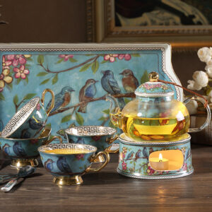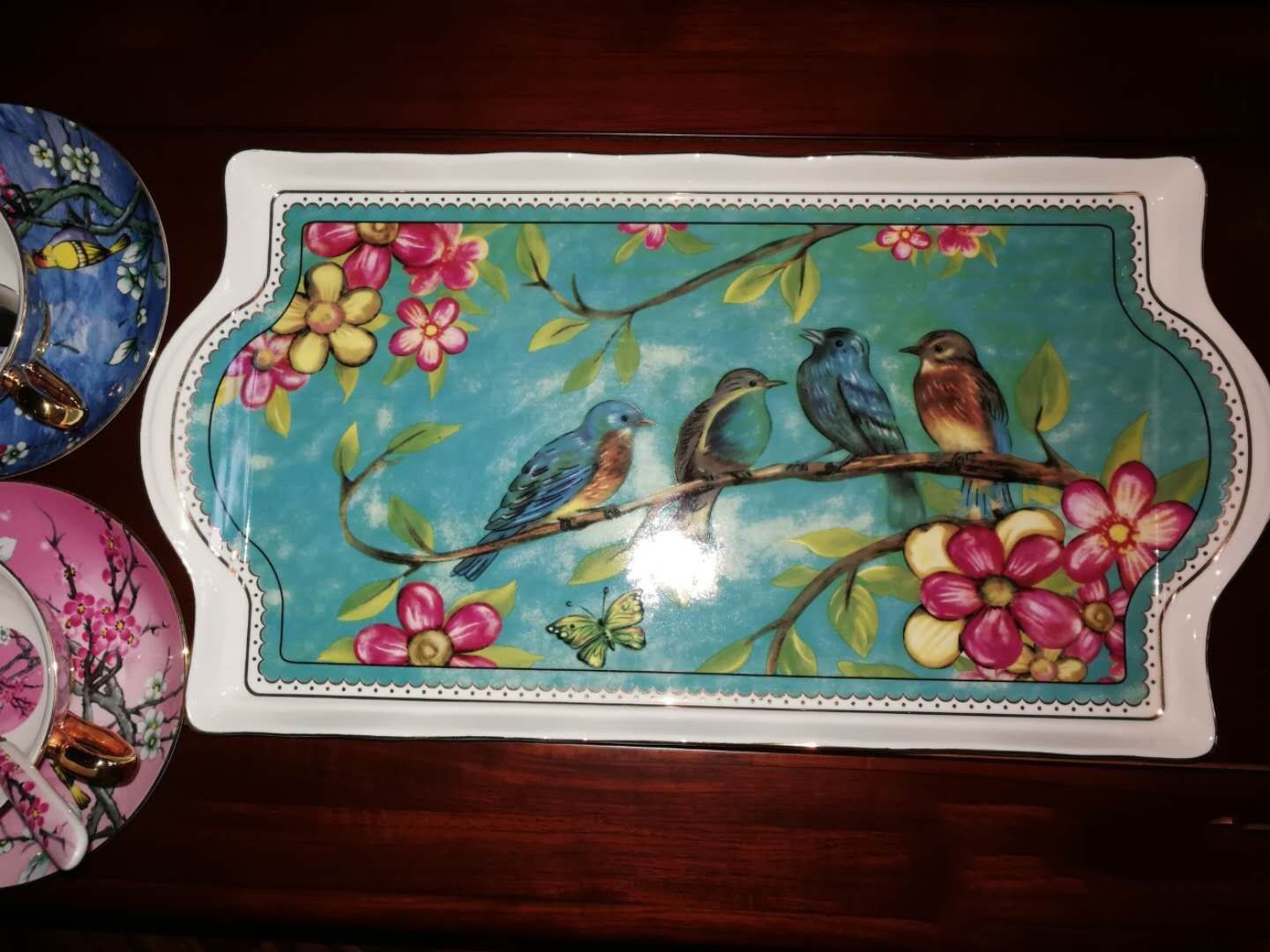 Elevate your tea time with this stunning bluebird tea tray. Crafted from high-quality bone china, it features a beautiful bluebird in a forest motif that will transport you to a peaceful setting. Measuring 8 by 16 inches, this tray is the perfect size for serving tea or coffee, and its raised handles on both sides make it easy to carry. With its timeless design, this tray will never go out of style and is sure to become a cherished piece in your collection. Don’t miss out on this opportunity to add a touch of elegance to your tea time!