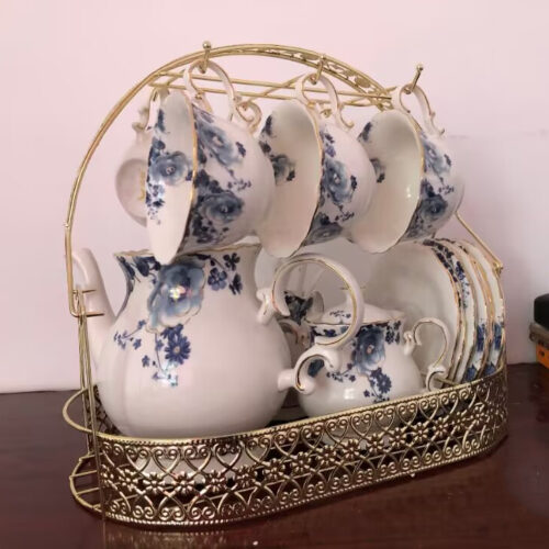 Floral English Tea Set with Rack Porcelain Teapot Set