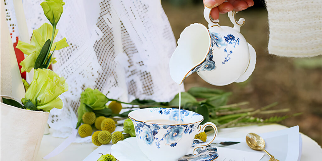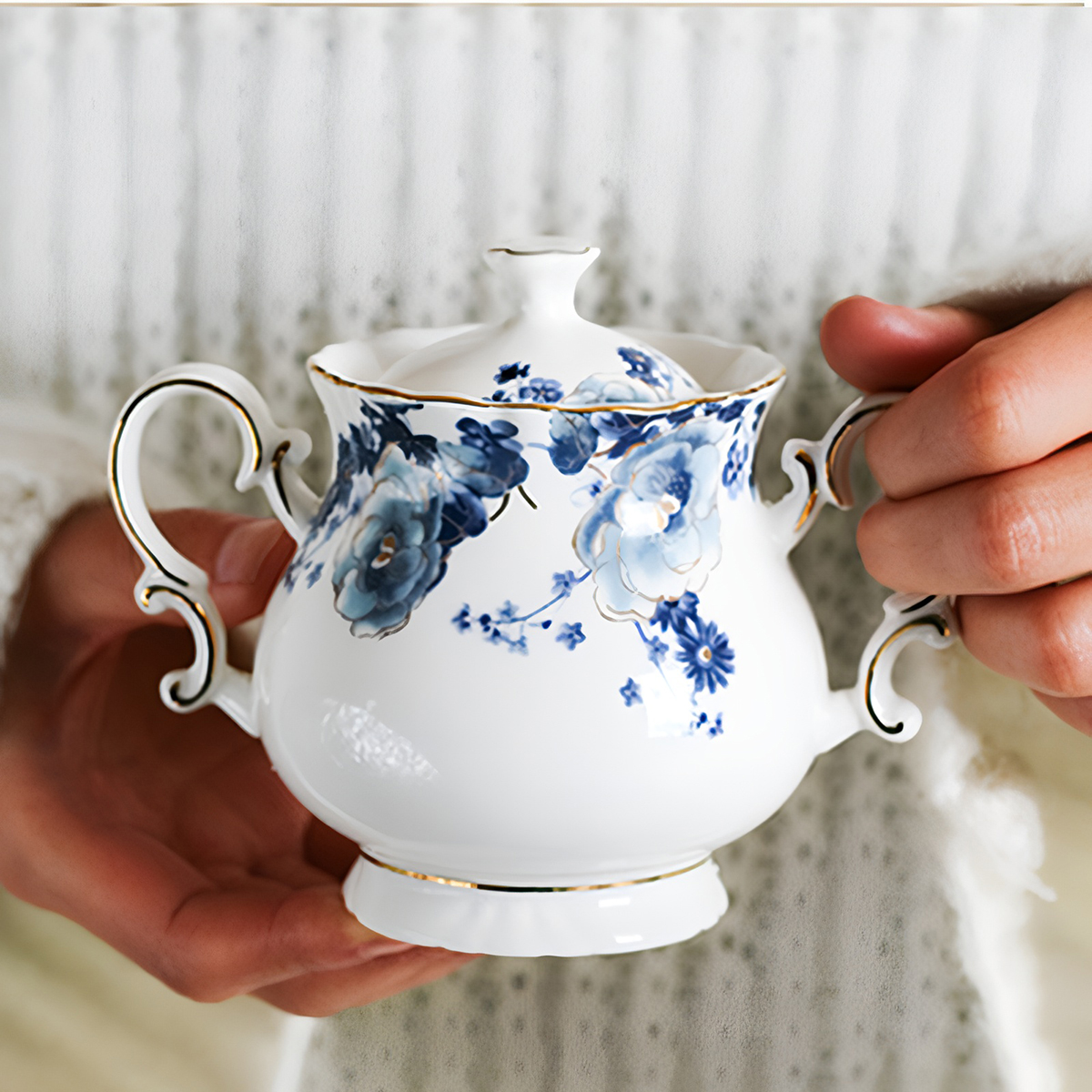 | Elevate your tea: Pour milk with grace using the creamer. | Craft your ideal tea: Personalize it with the sugar bowl. |