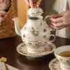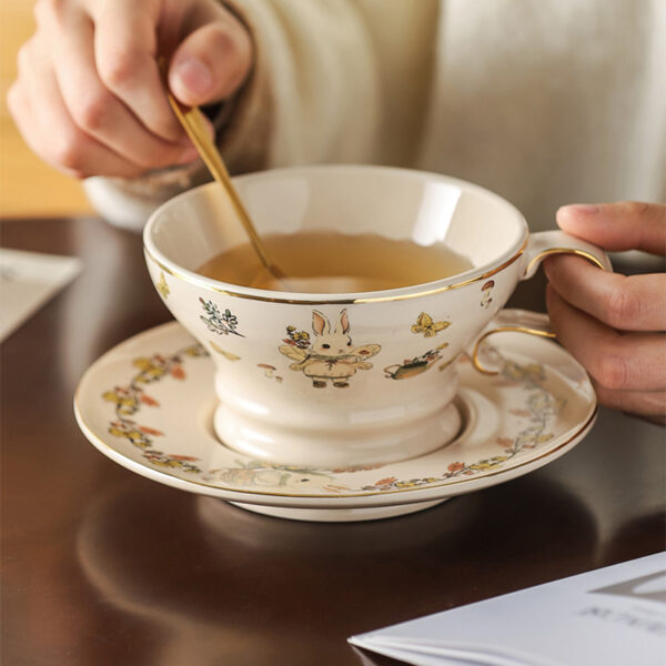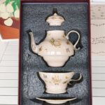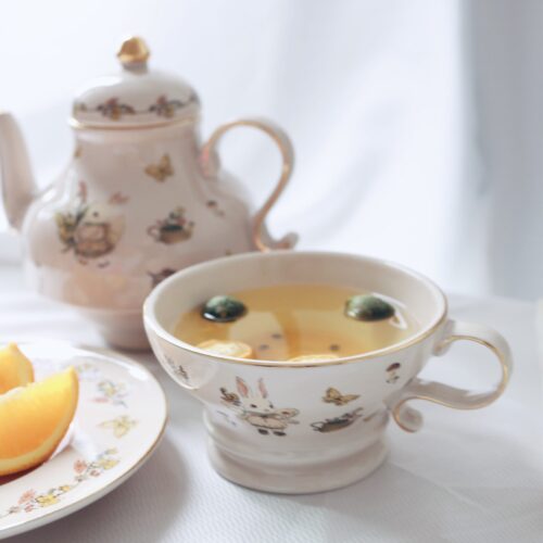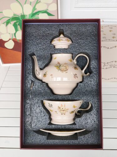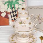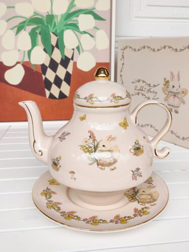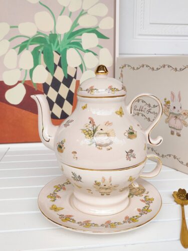 Beyond its charming appearance, the Bunny Tea Set for One is designed with your utmost comfort in mind. The teapot’s generous 22 oz capacity ensures that your tea indulgence is as ample as it is delightful, perfect for those leisurely afternoons or moments of serene reflection. The set’s porcelain is accentuated with gold trimmings, adding a layer of sophistication and luxury to its overall appeal. Whether it’s part of your daily ritual or a special occasion, this tea set brings a touch of opulence and joy to any setting, making every sip a luxurious escape.