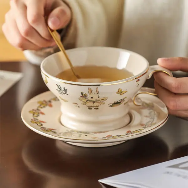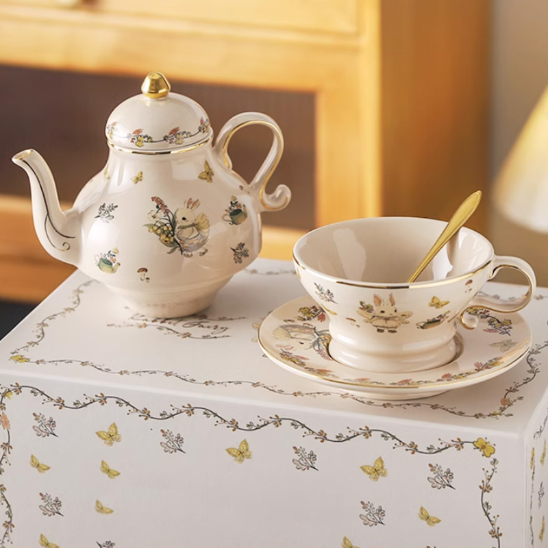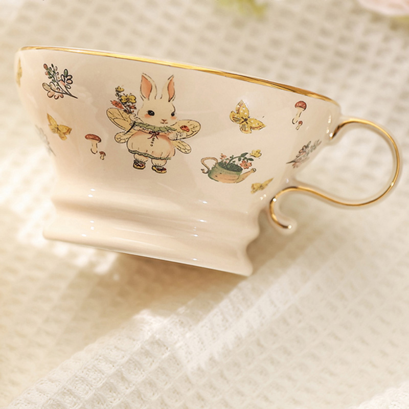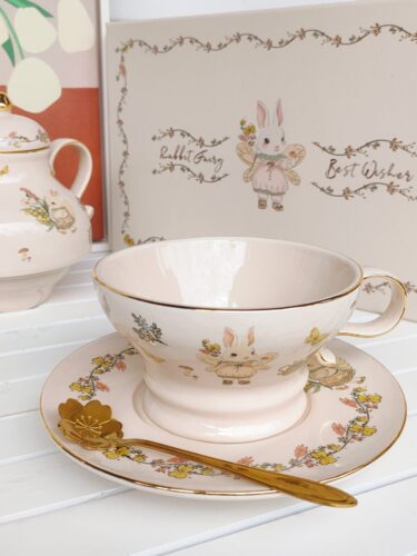 Step into a world where whimsy meets elegance with our Bunny Tea Set for One, a delightful addition to your tea collection that captures the essence of English cartoon charm. Featuring an adorable bunny cradling a flower, with butterflies and additional floral accents adding to the enchantment, this set turns every tea time into a magical moment. Crafted with attention to detail and a nod to luxury, its unique design and high-quality porcelain construction make it a must-have for those who cherish the fusion of artistry and function in their tableware.