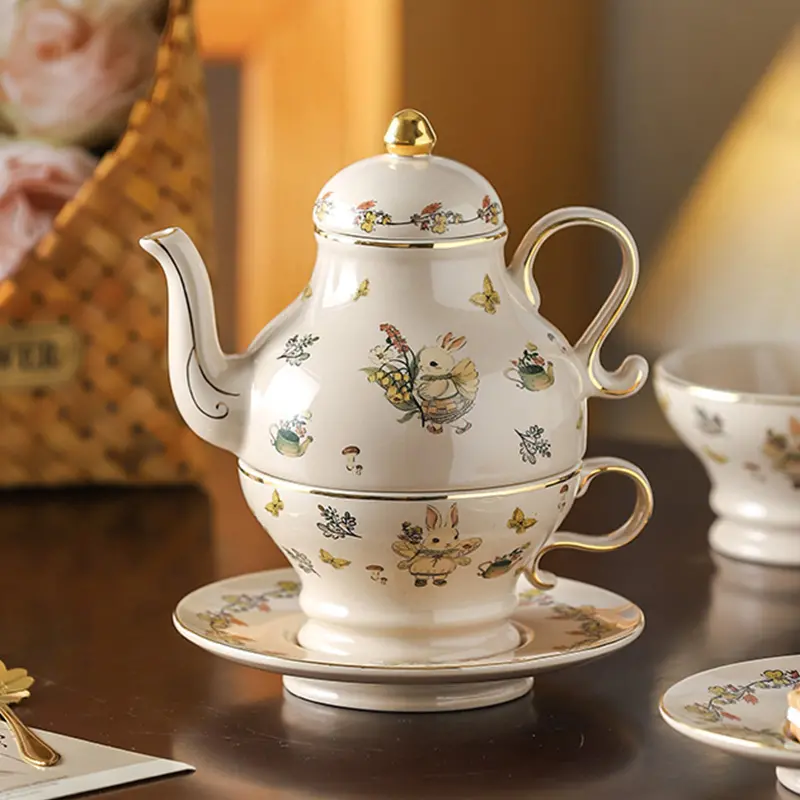 TSB21BB008 D1 Bunny Tea Set for One Porcelain Teapot Set