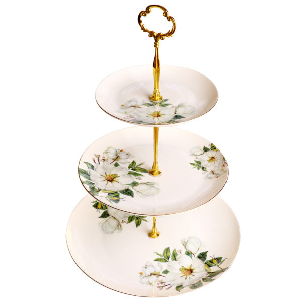 TSB19BB001 3 Camellia Cake Stand Bone China 3-Tier TSB19BB001 2 Camellia Cake Stand Bone China 3-Tier