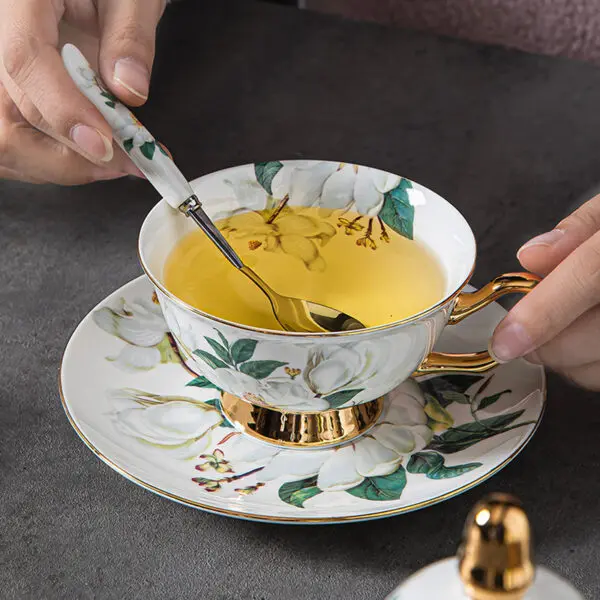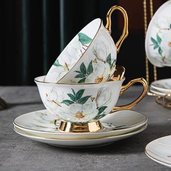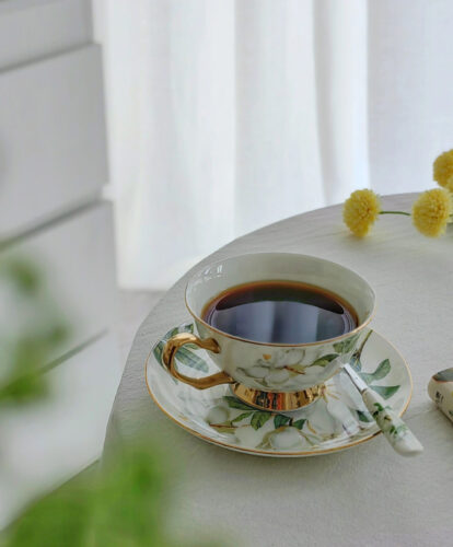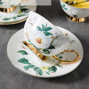 Witness the natural beauty of camellia flowers brought to life on each cup and saucer. The detailed and radiant camellia patterns make this set a stunning focal point, adding an element of sophistication to your tea rituals. Whether you’re enjoying a peaceful cup alone or hosting an intimate gathering, the Camellia Tea Cup and Saucer Set promises a visual feast and an unparalleled tea-drinking experience.