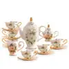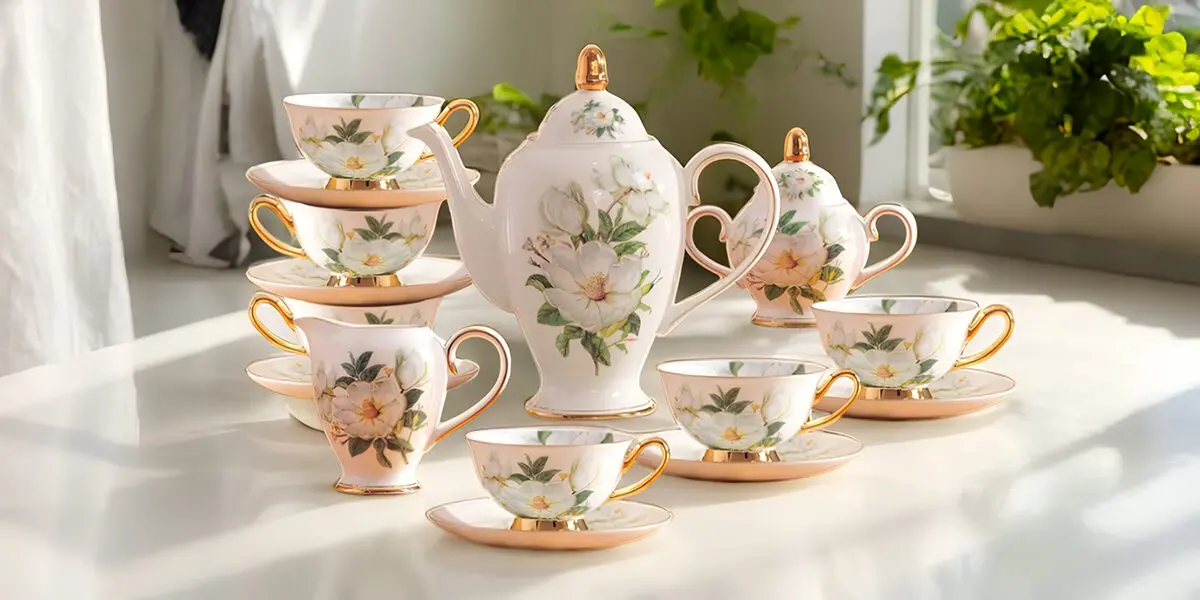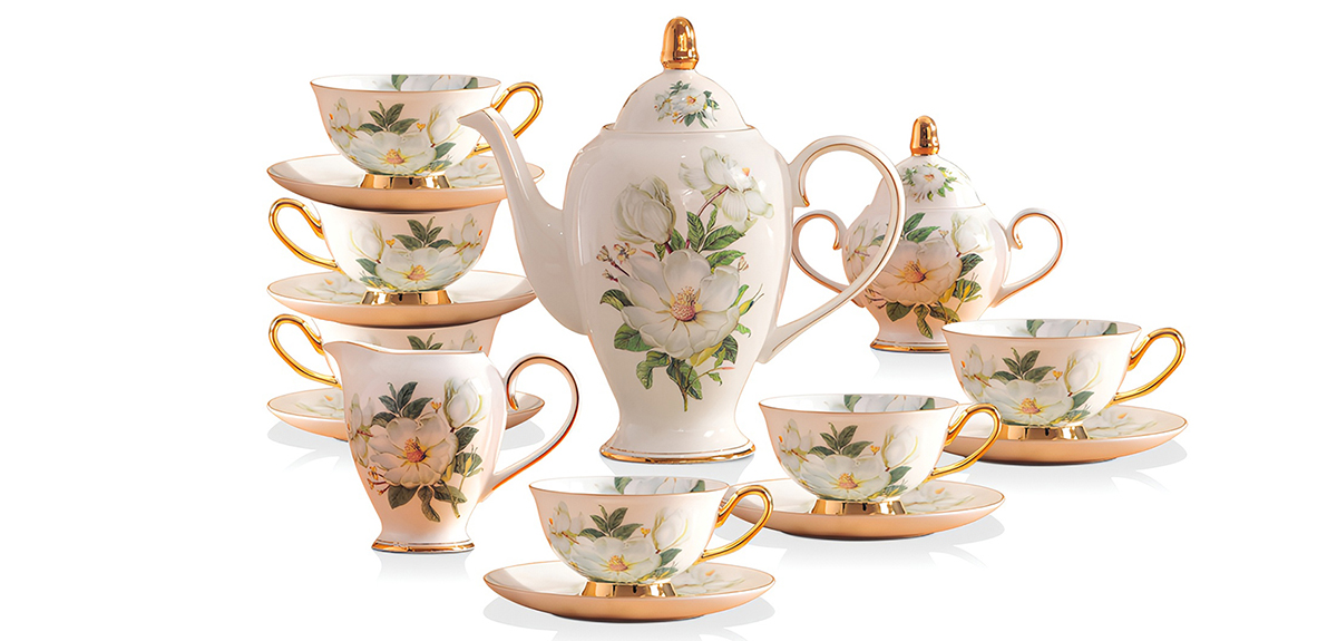 Indulge in timeless sophistication with our Camellias Vintage Tea Set, crafted from exquisite bone china. This quintessential 15-piece English tea set, featuring a tall teapot, a dainty milk jug, a charming sugar bowl, and six sets of cups and saucers, is a celebration of classic design. The centerpiece of this set is the lifelike camellia flower motif, lending an air of grace and charm to every tea-drinking experience. Meticulously fired from high-quality bone china, this collection not only exudes enduring durability but also boasts a smooth surface that ensures effortless cleaning. Elevate your tea rituals with the sheer beauty of the Camellias Vintage Tea Set – a true embodiment of classic elegance.