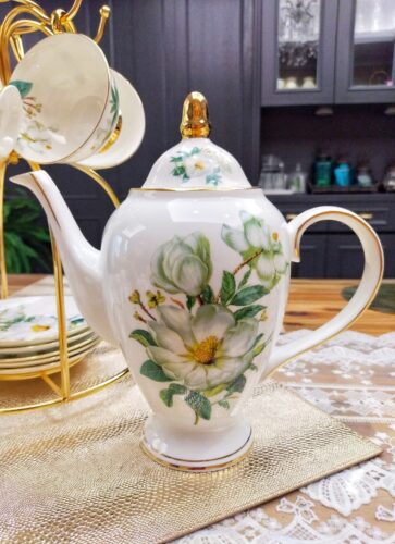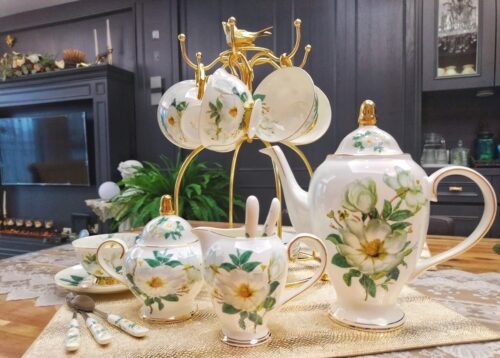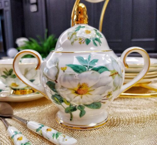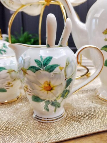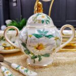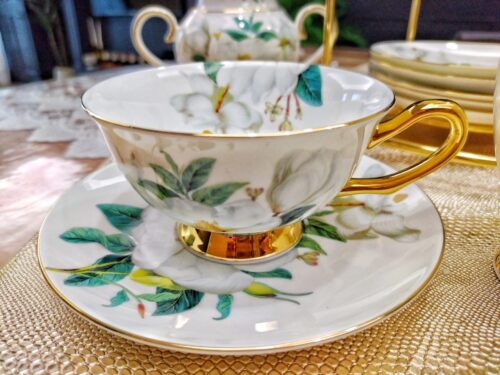 Unveil the allure of our Camellias Vintage Tea Set, where each piece is a canvas adorned with vibrant and intricately detailed camellia patterns. The vivid and enchanting aesthetics make this tea set a visual feast, transforming your tea time into a captivating experience. Beyond its ornate beauty, the set stands out for its practicality and durability, thanks to the high-quality bone china construction. Whether you’re hosting a sophisticated afternoon tea or simply enjoying a quiet moment, the Camellias Vintage Tea Set adds a touch of charm to every occasion. Revel in exquisite craftsmanship and immerse yourself in the beauty of tradition with this stunning tea set.