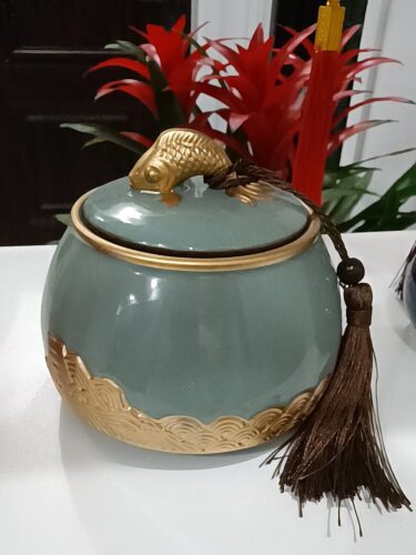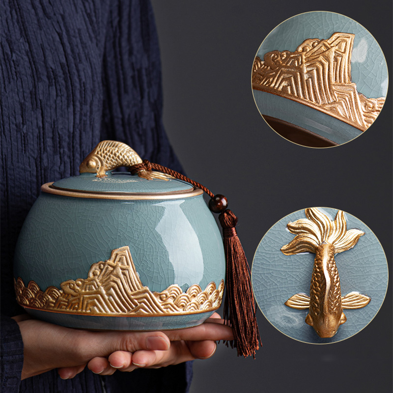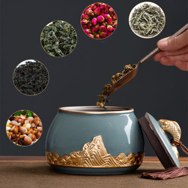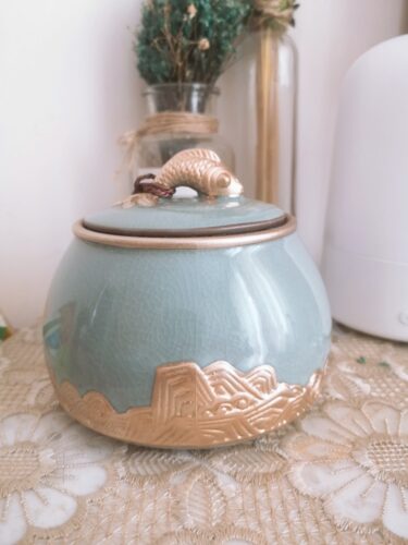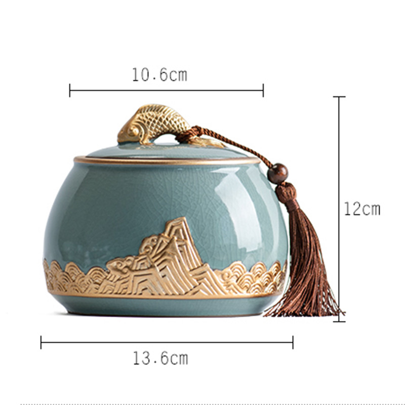 This elegant tea caddy is a must-have for all tea drinkers. Made from durable ceramic and safe glaze, it uses waves and fish as the theme for the design, which symbolizes courage and success. You can brew and store your loose leaf and enjoy your favourite flavour any day of the week. It also makes the perfect gift for friends, family, or coworkers who love to drink loose-leaf tea. Please hurry up and grab it!