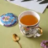 This Feicui Bone China Mug with Lid perfectly combines beauty and practicality. Made from high-quality bone china, this mug has a matching lid and spoon, making it the ideal choice for enjoying your favorite tea or coffee. The mug features an elegant and timeless classical design, making it a great addition to any home or office. Whether you’re looking for a new mug to use at work or enjoy your morning coffee at home, the Feicui Bone China Mug with Lid is perfect.