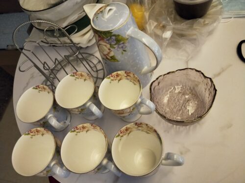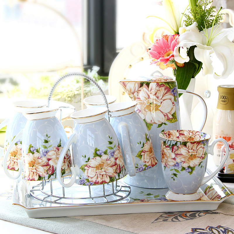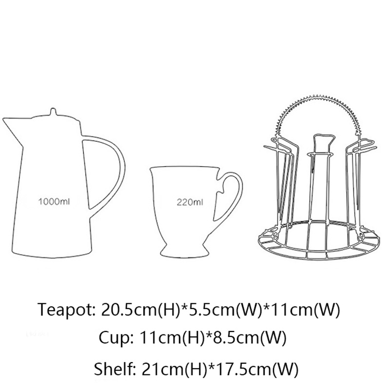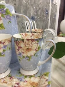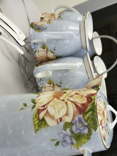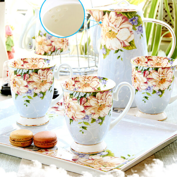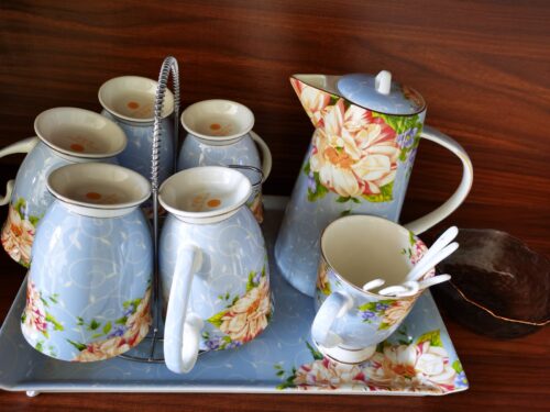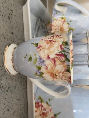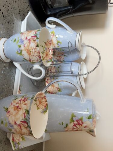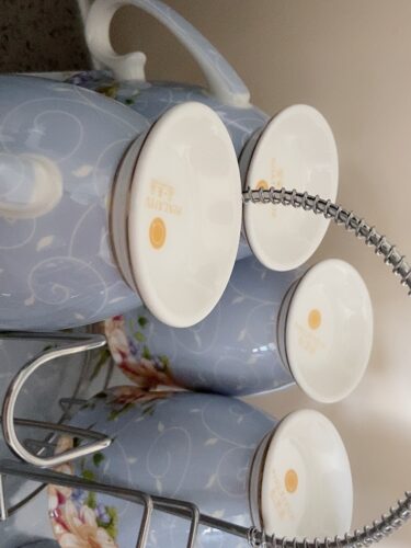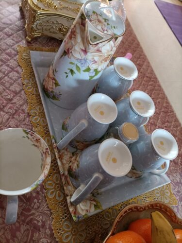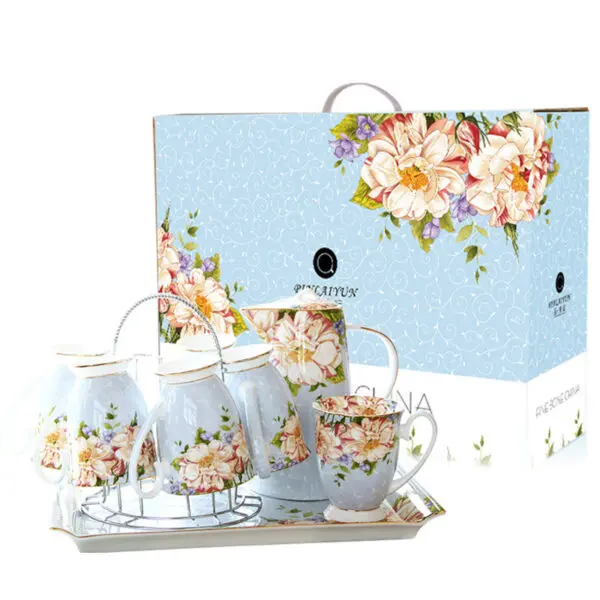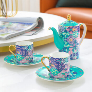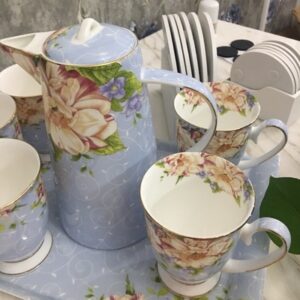 A beautiful and elegant tea and coffee set with a beautiful floral pattern and sleek bone china body. It comes with a high pot and six cups, and a holder. The tall, bright colors and floral patterns on this set will brighten your day when you have a bad one. Please hurry up to grab yours!