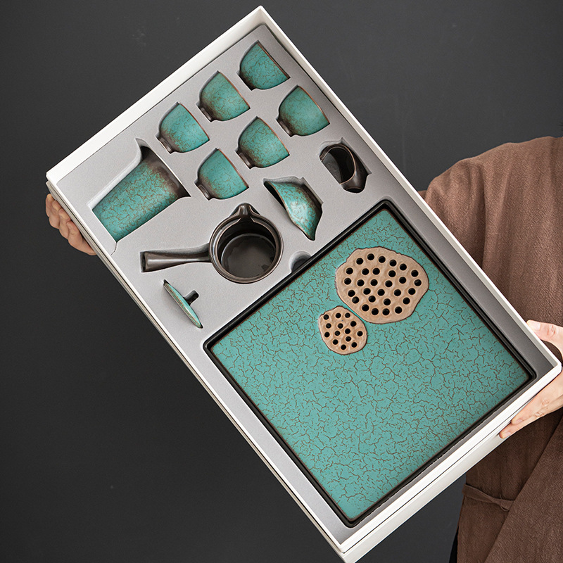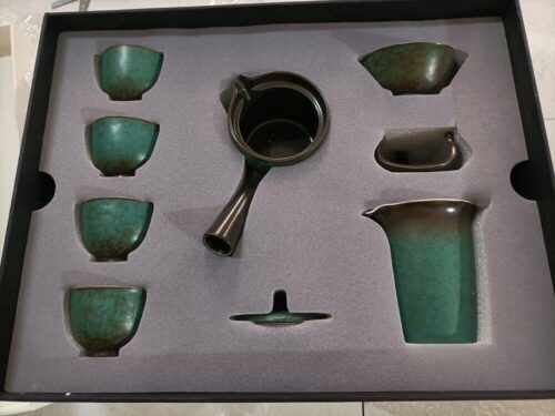 Indulge in the serenity of tea rituals with our Green Lotus Japanese Gongfu Tea Set. Immerse yourself in the timeless design featuring a green lotus theme, creating an atmosphere of tranquility. The set, comprising 1 Kyusu teapot, 1 fair cup, 1 tea strainer set, 1 tray, and multiple teacups, is meticulously crafted to elevate your gongfu cha experience. Each piece undergoes a unique kiln transformation process, resulting in distinct textures, making every set a one-of-a-kind masterpiece. Packaged in an elegant gift box, this tea set is not just an ensemble; it’s an expression of artistry. Don’t miss the chance to bring home this unique tea set – a perfect gift for tea lovers and a delightful addition to any home. Elevate your tea moments with the Green Lotus Japanese Gongfu Tea Set.