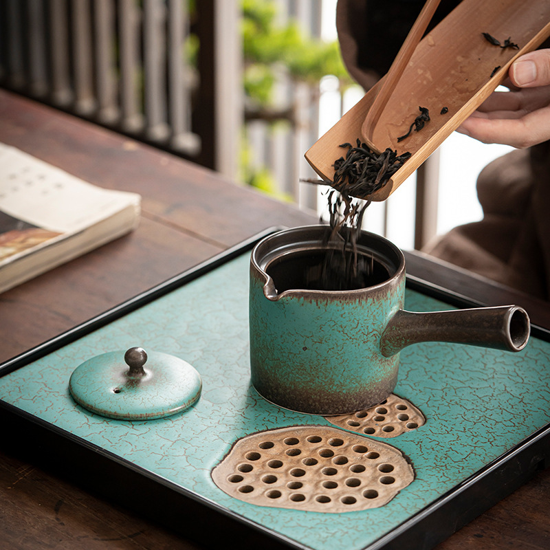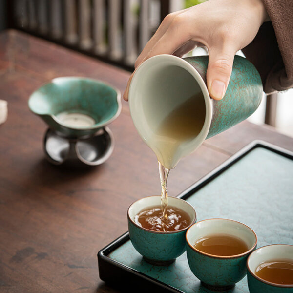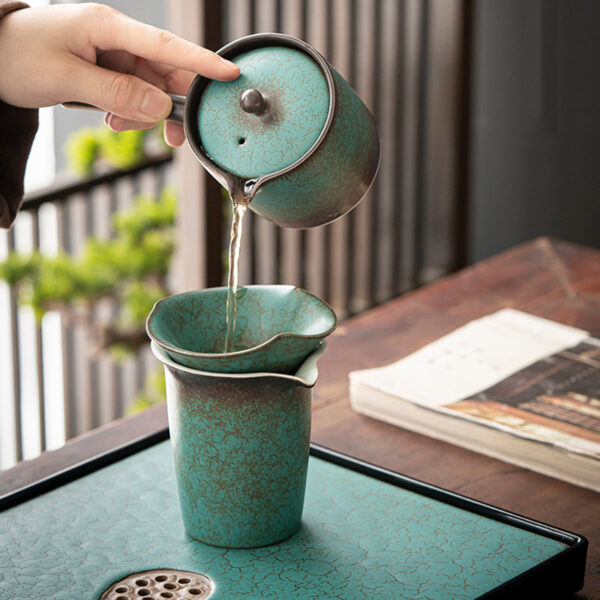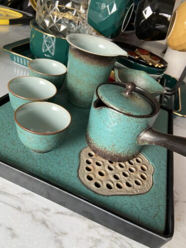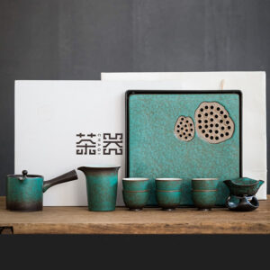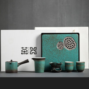 Unlock the extraordinary with our Green Lotus Japanese Gongfu Tea Set – where vintage meets beauty seamlessly. This set, comprised of 1 Kyusu teapot, 1 fair cup, 1 tea strainer set, 1 tray, and 4 or 6 cups, is not just a functional ensemble but a visual delight. Crafted from high-quality ceramic through a kiln transformation process, each piece boasts a unique texture akin to fingerprints, adding a touch of individuality to your tea sessions. The highlight of this tea set lies in its distinctive texture, creating a harmonious blend of vintage charm and contemporary elegance. The smooth surface not only enhances its aesthetic appeal but also ensures effortless cleaning. Ideal for gifting or as a housewarming present, this tea set is a versatile addition to any tea enthusiast’s collection. Elevate your tea experience with the Green Lotus Japanese Gongfu Tea Set’s unparalleled elegance and unique textures.