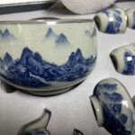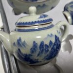This pure handmade blue and white porcelain tea set is a masterpiece from Jingdezhen, China. The delicate porcelain is made with fine clay and is fired at high temperatures to give it a glossy finish. The blue and white patterns are hand-painted with great attention to detail, creating a classic and timeless look. Chinese blue and white porcelain is made with underglaze decoration, which makes it durable and fade-resistant.