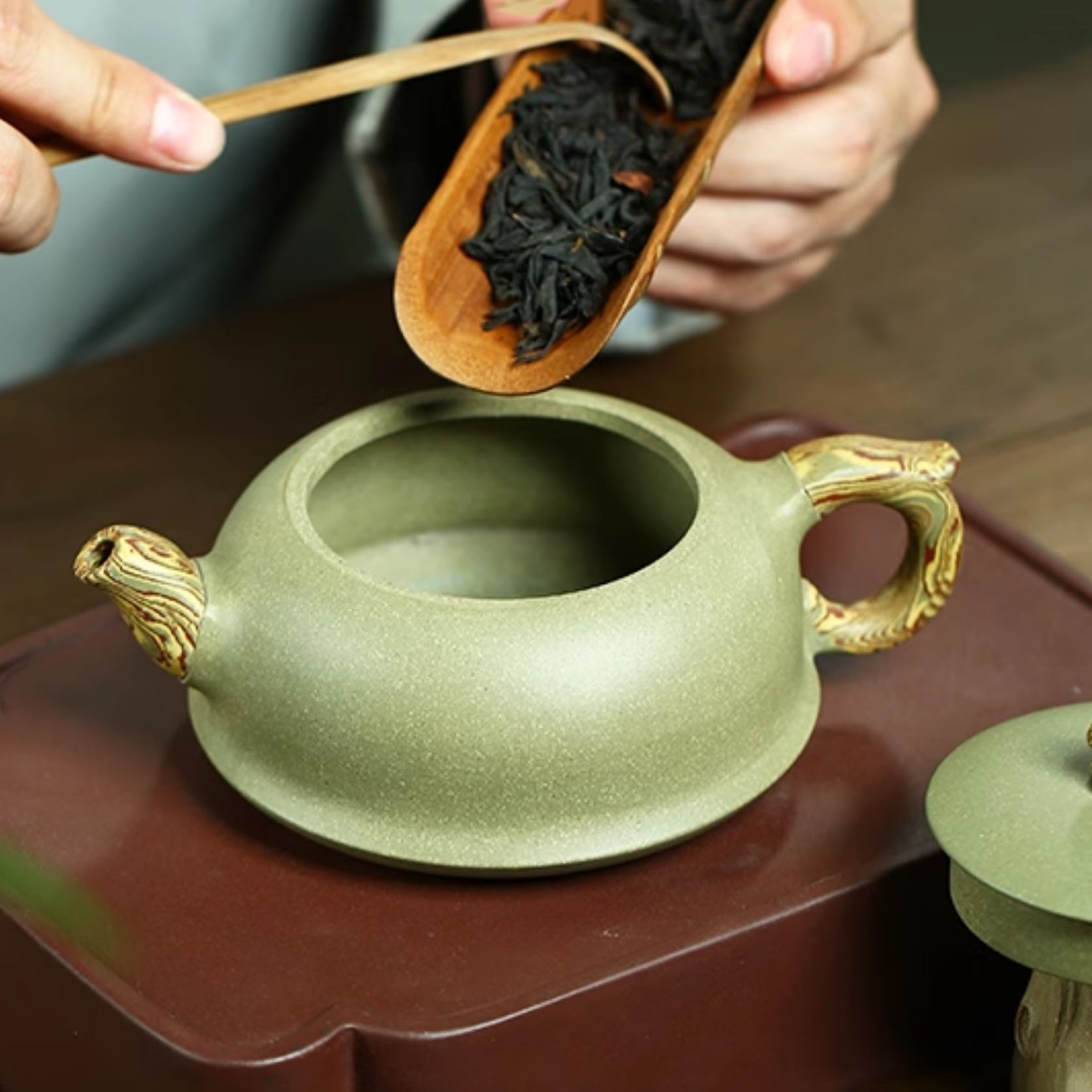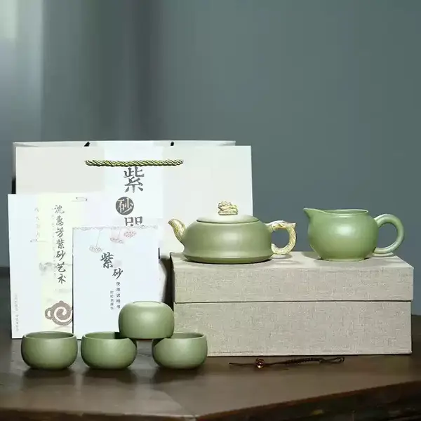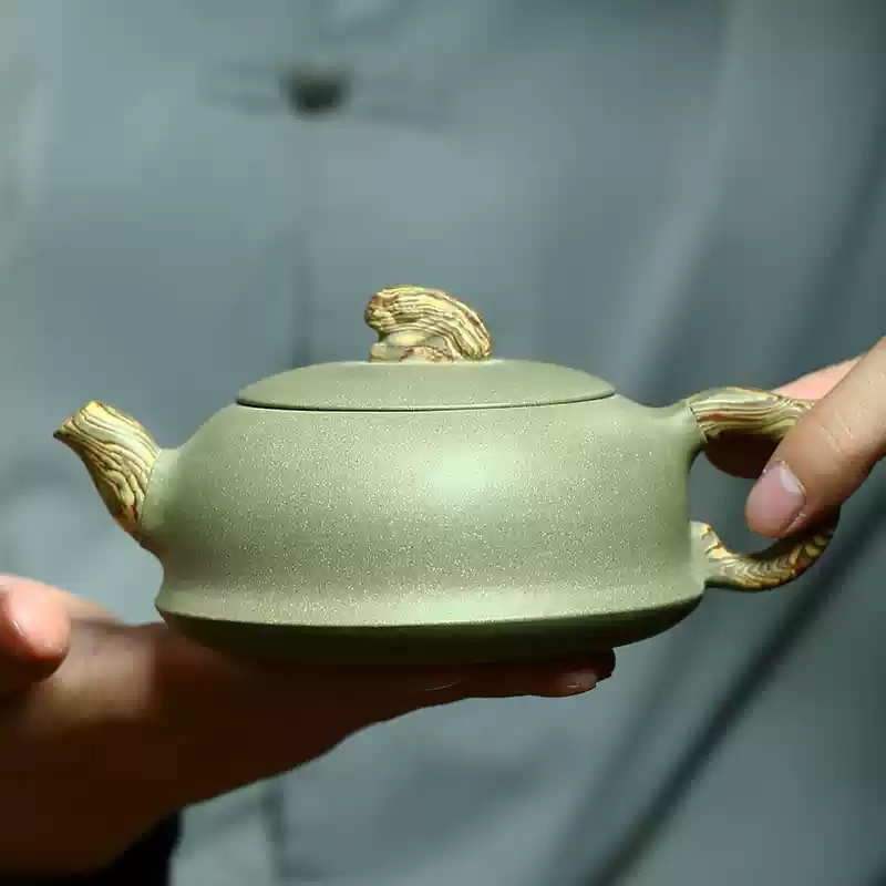 Introducing the Lion Chinese Yixing Tea Set, crafted from refreshing green Zisha clay and born in the legendary pottery town of Yixing, China. This tea set draws inspiration from the noble lion, blending natural beauty with a sense of strength—perfect for those who appreciate refined artistry with a bold character.