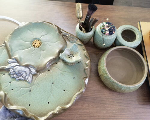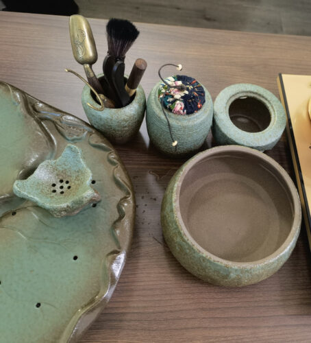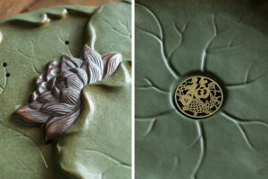 | Fine-carved lotus-shaped tea tray | Drainage holes on the surface and bottom |