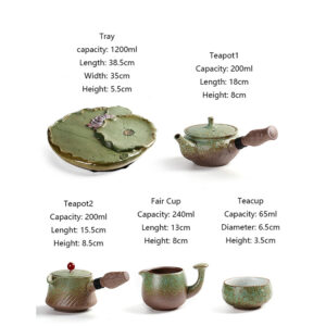 Immerse yourself in the art of Japanese gongfu cha with our exquisite Lotus Japanese Gongfu Tea Set Rough Pottery. This complete set encompasses all the essentials for a refined tea experience, featuring a Kyusu teapot, Fair Cup, tea strainer set, tray, tea utensil set, tea wash, and teacups – each meticulously crafted with a classical touch. The high-quality ceramic construction not only ensures durability but also facilitates easy cleaning. The lotus-themed design adds an oriental touch of beauty and poetry to every element of this set, making it the perfect companion for enhancing your tea moments with friends and family. Don’t miss the chance to elevate your tea game – indulge in the timeless allure of this amazing tea set and make each tea session a work of art!