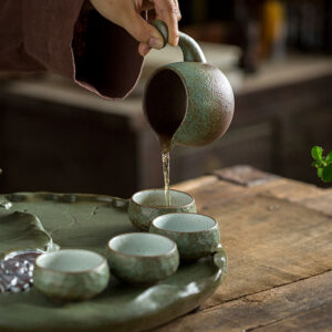 Uncover the unparalleled beauty of our Lotus Japanese Gongfu Tea Set Rough Pottery, a true masterpiece in the world of tea. The tea tray takes center stage with its intricate and sizable lotus and lotus leaf patterns, meticulously crafted using exquisite relief techniques. This stunning centerpiece transforms your tea-drinking ritual into an aesthetic journey, embodying the timeless allure of lotus blossoms. The attention to detail extends to every element, with the Kyusu teapot, Fair Cup, and other components echoing the diverse stages of lotus maturation, capturing the essence of nature’s elegance. Crafted from high-quality ceramic, this set not only promises durability and easy maintenance but also serves as a tribute to the enduring beauty of the lotus. Elevate your tea game with the Lotus Japanese Gongfu Tea Set Rough Pottery, where the artistry of the blossom becomes the focal point, creating a tea experience that transcends expectations.