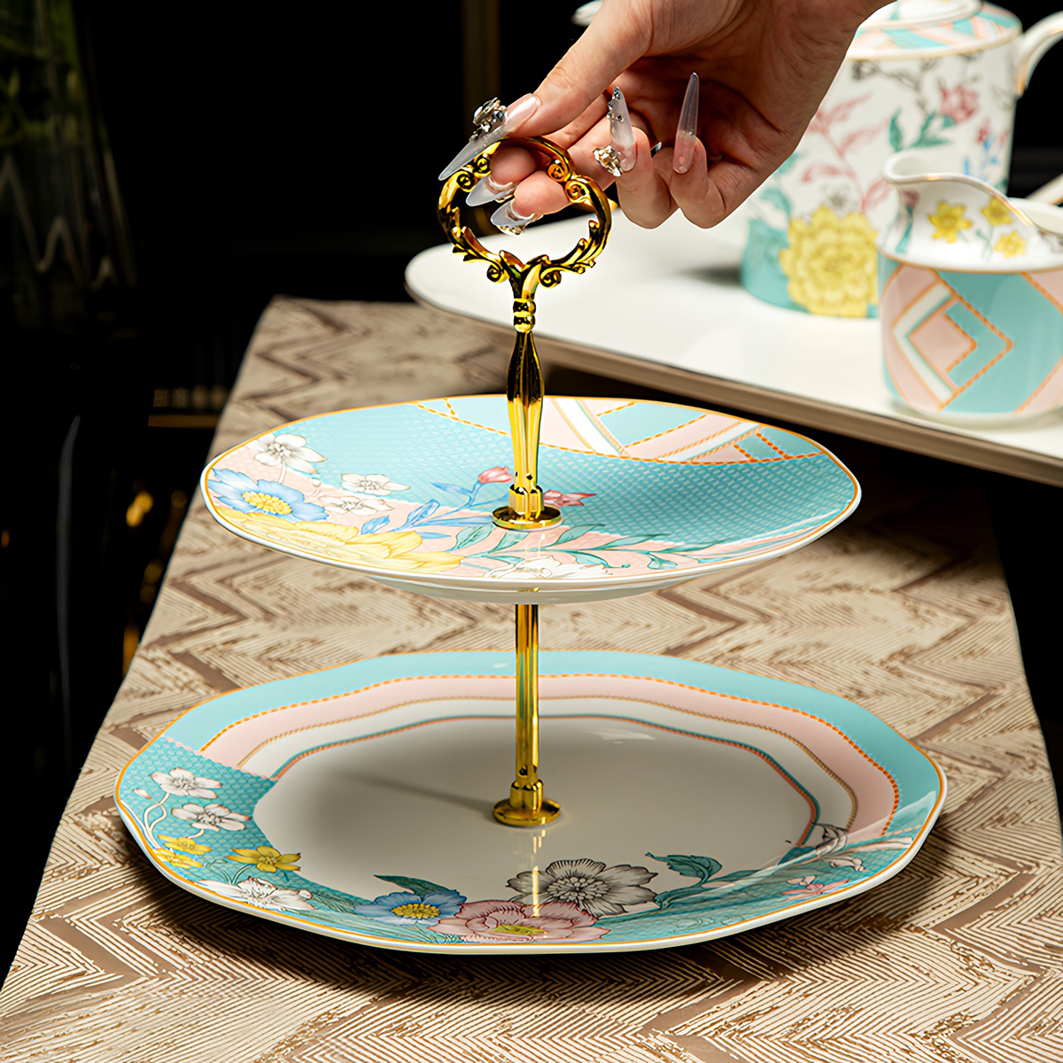 Elevate your tea party experience with the Milan Flower Cupcake Stand, beautifully crafted with a Milan garden theme. Featuring exquisite blue and pink patterns, this stand showcases vibrant floral designs that bring life to your desserts. Made from high-quality bone china, it not only adds elegance to your gatherings but also serves as the perfect companion for displaying cupcakes. Whether you’re hosting a formal tea party or a casual get-together, this cupcake stand will enhance your table setting and impress your guests.
