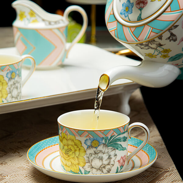 Both the teapot lid and sugar bowl lid feature an elegant European-style design that enhances the overall sophistication of the set. When you lift the lid of the teapot or sugar bowl, you’ll experience a sense of elegance and beauty, making every tea moment feel special. Enjoy the refined details that make this tea set a standout addition to your collection.