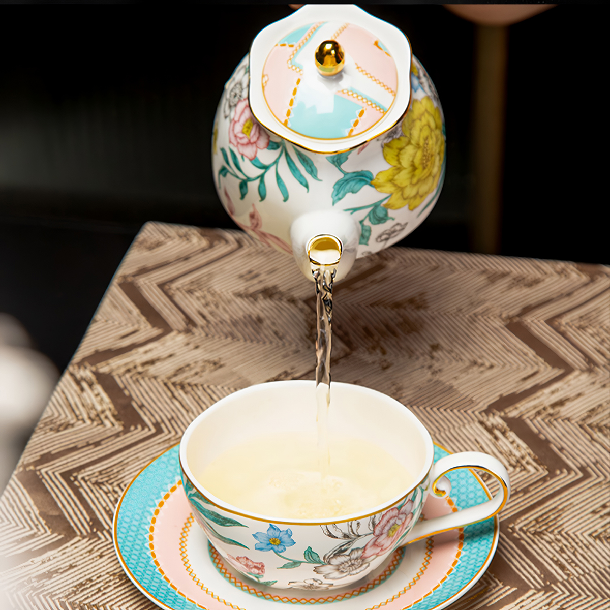 English Tea SetsMilan Flower English Tea Set Bone China Teapot Set