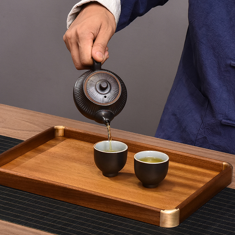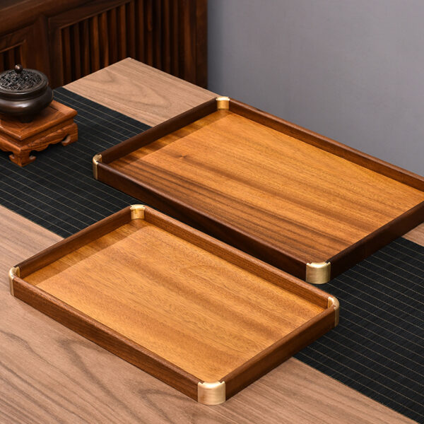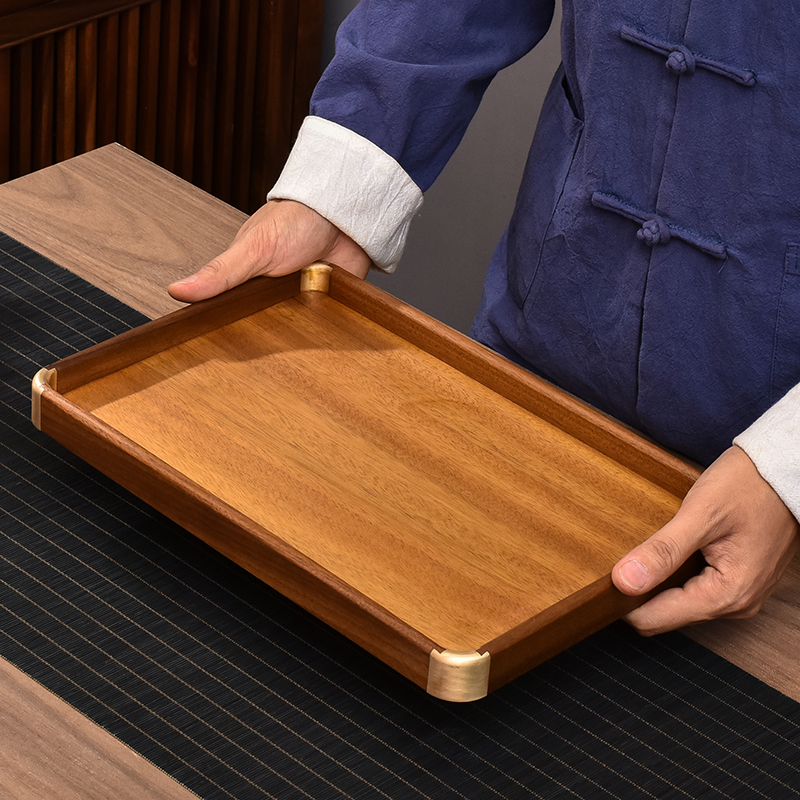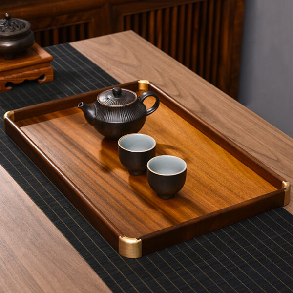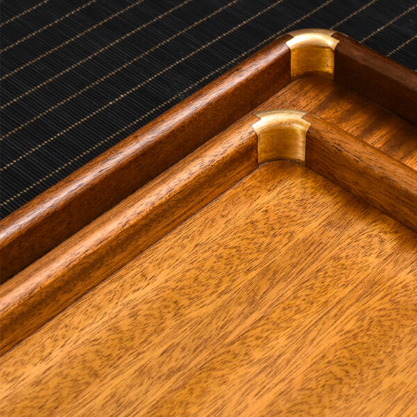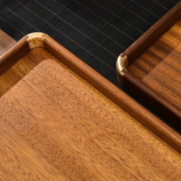 Upgrade your tea time with our luxury walnut tea tray. Made with a beautiful brown walnut finish and durable copper connections at the corners, this tray is carefully crafted to provide a sturdy and stylish platform for brewing and serving loose-leaf tea. With two sizes to choose from, it’s perfect for any occasion. The natural finish complements any home decor or kitchenware, adding an elegant touch to your tea-time ritual. Share a cup of tea and fill your loved ones’ hearts with joy. Please hurry up and grab this must-have tea accessory now!