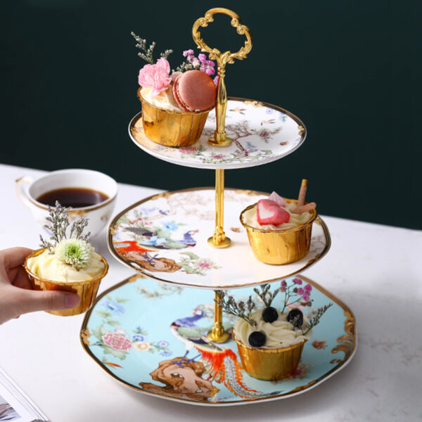 3-Tier Phoenix Cake Stand Bone China Serving Tray