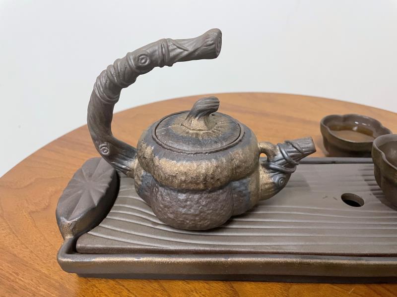 Immerse yourself in the artistic charm of our Pumpkin Japanese Tea Set Pottery Teapot Set, where creativity meets durability. Crafted from natural mineral clay and adorned with a glossy iron glaze, this set not only captures the essence of vintage design but also emanates an elegant allure. Fired at a high temperature of 1310 degrees Celsius, the tea set promises longevity and enduring beauty. The teapot’s distinctive pumpkin shape and the flower-like cups add a unique touch to your tea ceremonies, making each experience a creative journey. The set is thoughtfully designed with a removable, water-collecting tea tray for added convenience.