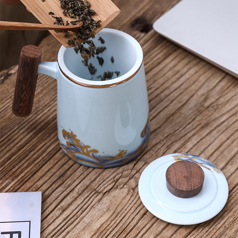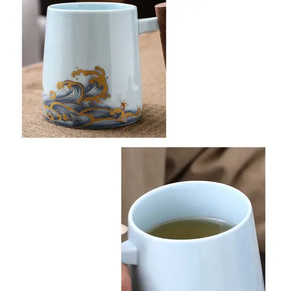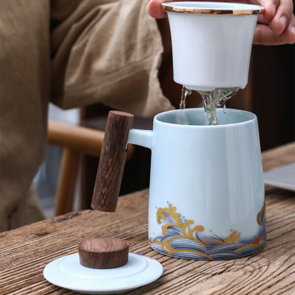 Tumbling Waves Tea Mug with Infuser and Lid 15 OZ