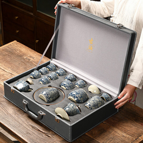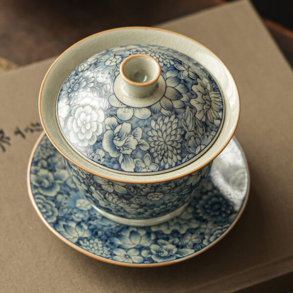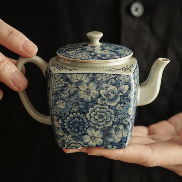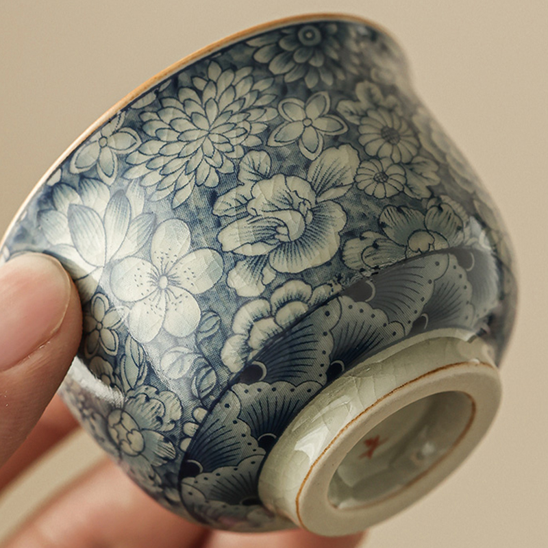 Transport yourself to a bygone era with our Vintage Chinese Gongfu Tea Set, a delicate and classical masterpiece that embodies the timeless charm of blue and white porcelain. The main color palette, featuring classic blue-and-white hues, sets the stage for intricate floral patterns. Each delicate bloom brings a sense of freshness and natural beauty to this traditional tea set, creating an ambiance of elegance. Crafted with precision from high-quality porcelain and fired at high temperatures, this set boasts durability and a colorfastness that withstands the test of time. As the days pass, the exterior develops exquisite ice-crackle textures, adding a layer of timeless beauty.