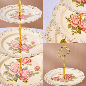 Vintage Rose Cake Stand Porcelain 3-tier