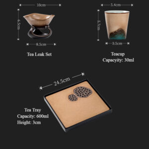 - 08 Pieces: Includes 1x Kyusu Teapot, 1x Fair Cup, 1x Tea Strainer Set, 4x Cups, 1x Tray