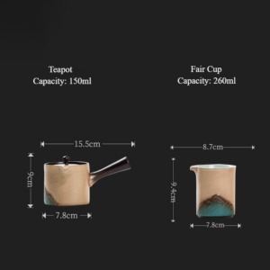 - Kyusu Teapot: 150 ml or 5.07 oz, Length 15.5 cm (6.1 inches), Width 7.8 cm (3.07 inches), Height 9 cm (3.54 inches)