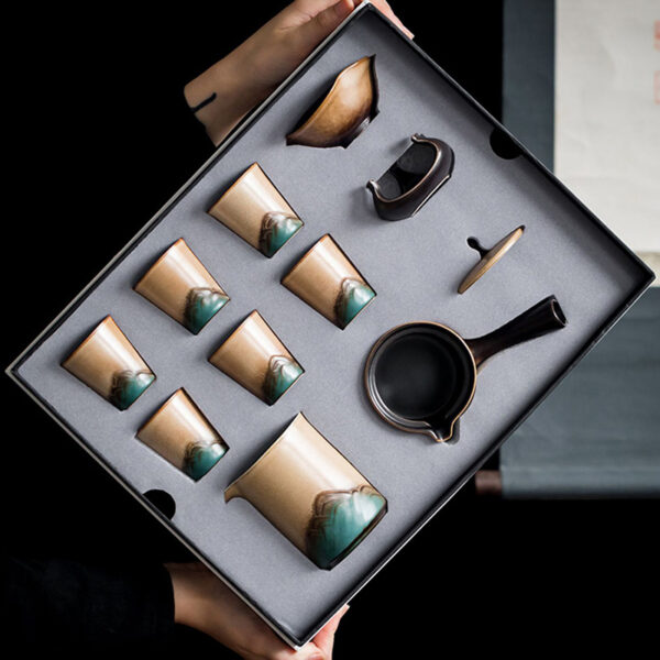 - 10 Pieces: Includes 1x Kyusu Teapot, 1x Fair Cup, 1x Tea Strainer Set, 6x Cups, 1x Tray