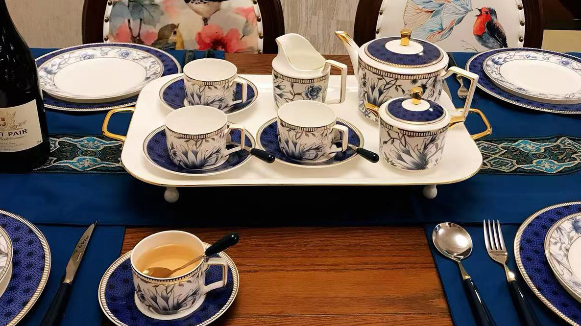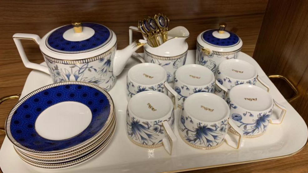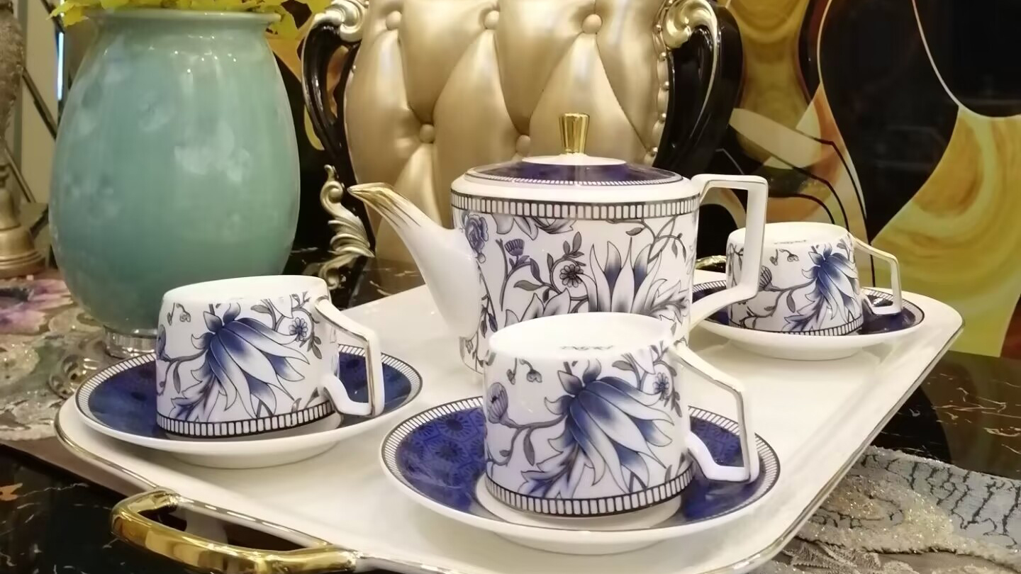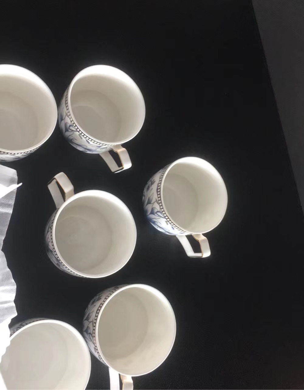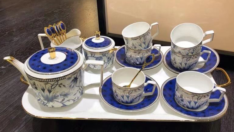 The set came wrapped in perfect condition. The quality is much better than I expected. They look very delicate, and elegant. The design is fantastic with lots of fine details, and the color looks elegant with blue and white. So I bought a second set for my tea party.