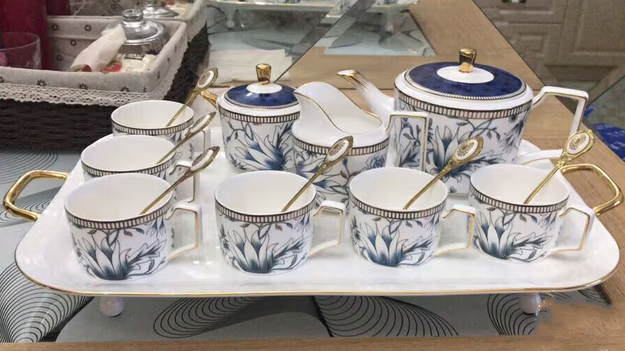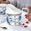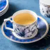 Introducing our exquisite Yucca Bone China English Tea Set in Blue and White – a true masterpiece designed to enchant tea and coffee aficionados alike. Immerse yourself in the vintage charm of this luxurious set, which includes a bone china coffee pot, sugar bowl, creamer, cups, and saucers. The contemporary blue and white design, adorned with intricate magnolia flower patterns, creates an eye-catching allure perfect for any household. Crafted from high-quality bone china with over 45% animal bone meal, this set ensures durability and a smooth, sophisticated touch. Elevate your tea or coffee moments with the most luxurious English tea set in our store. Act now and bring home a timeless blend of beauty and functionality!