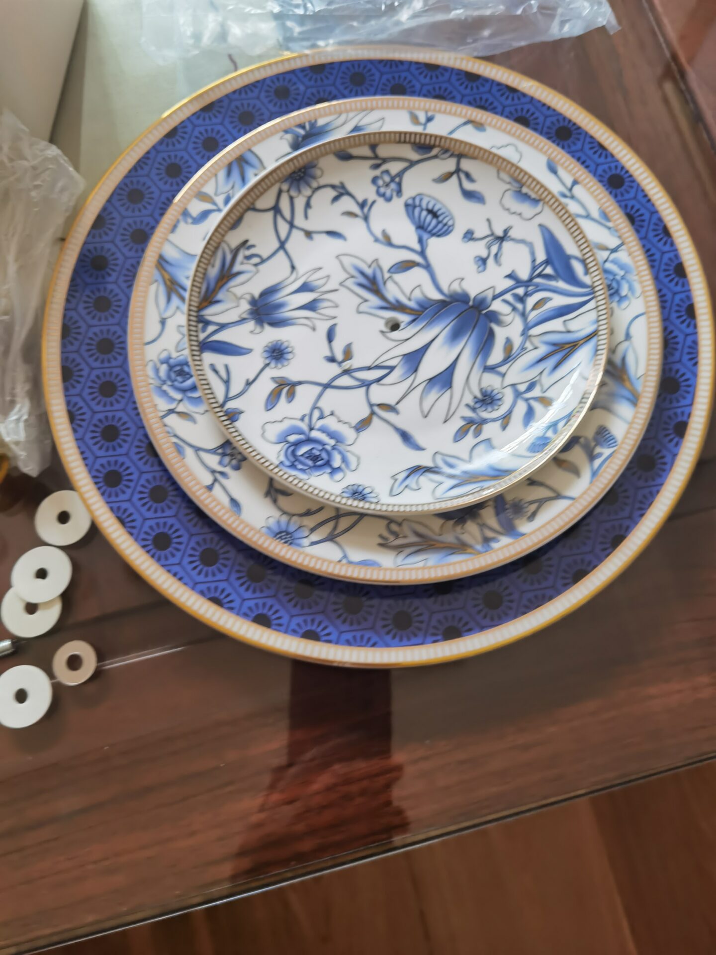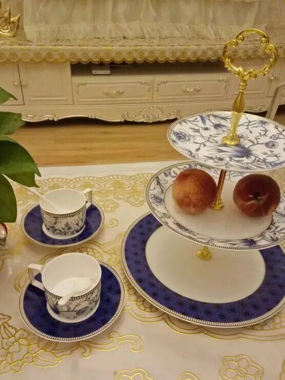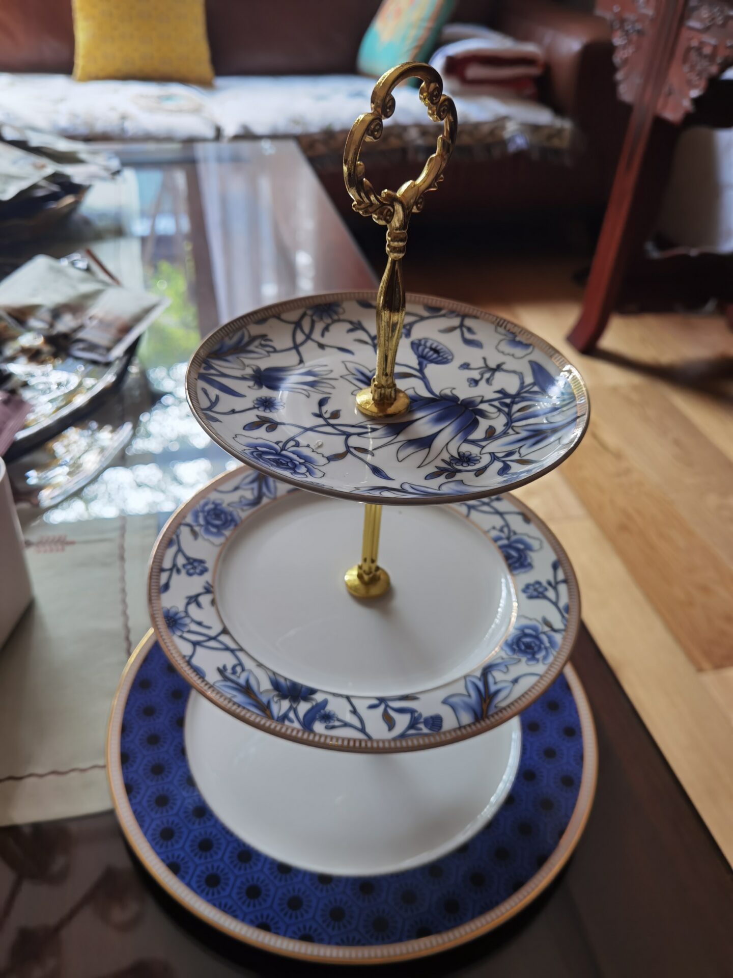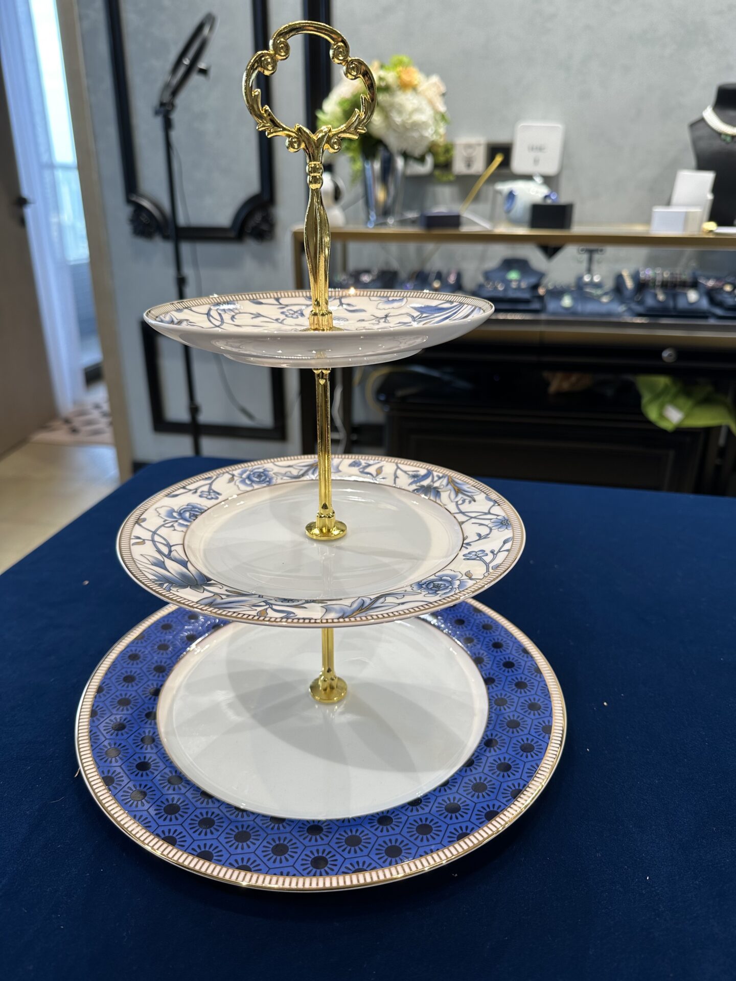 I really like this three tiers. Solid, sturdy, clean crisp blue and white color, classic and easy to put together.